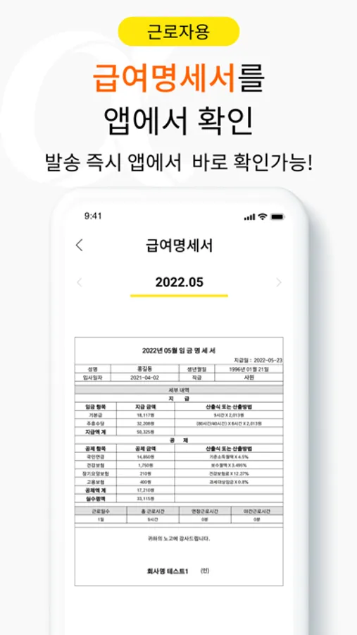 7. 이달과 지난달의 출퇴근 기록을 "급여내역"에서 확인할 수 있음