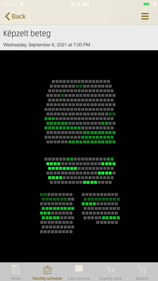 - Szék kiválasztása nézőtéren