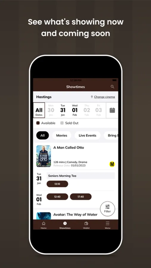 Still not sure what to see? No problem! Use filters in the app to browse what’s showing now, what’s coming soon, and special performances, to help you decide.