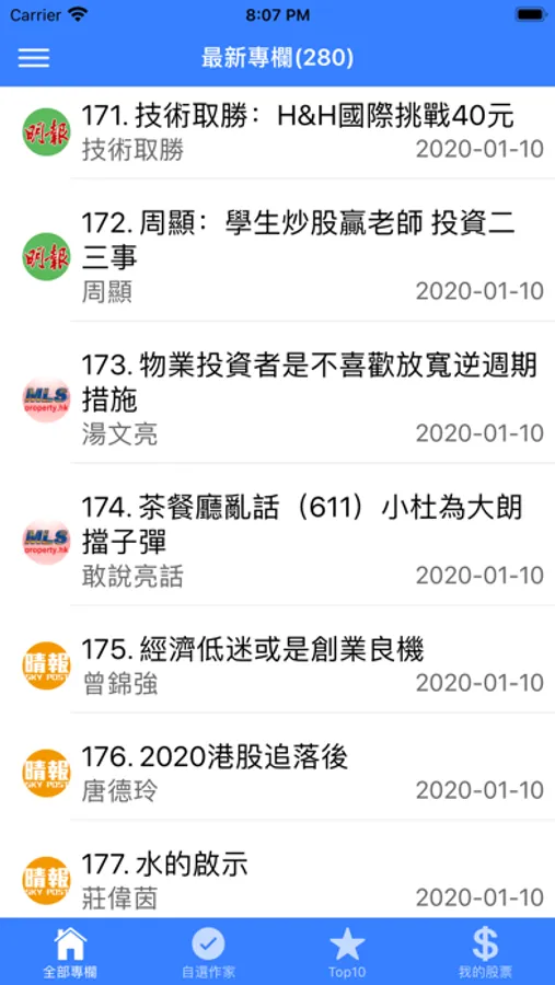 1. 每天最新財經專欄更新, 過百位財經名家專欄, 記錄專欄日股票股價以比較專家準確性