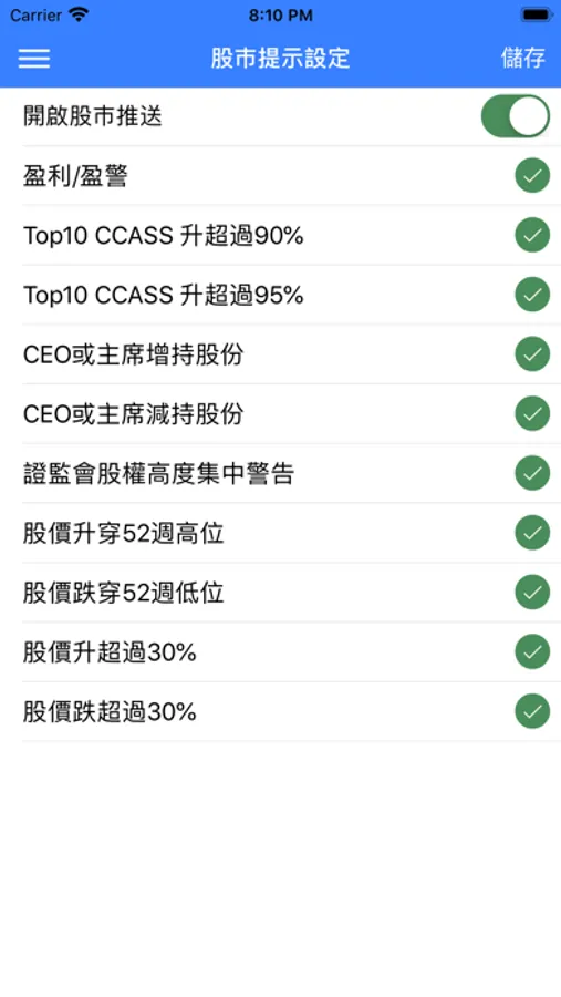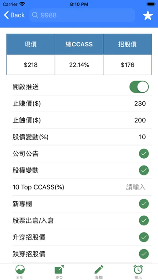 6. 股票提示(止賺價,企蝕價,公司通告,Top10CCASS, 新專欄,CEO/主席增持)