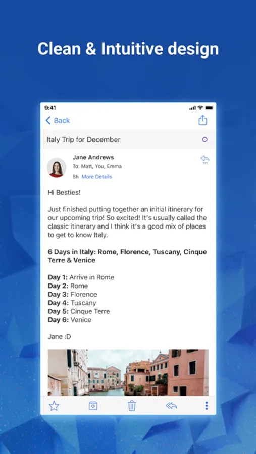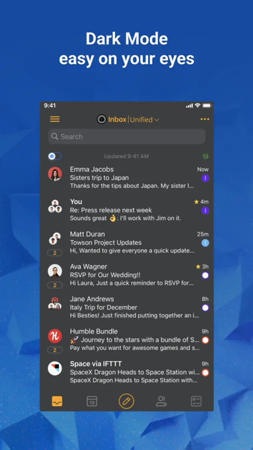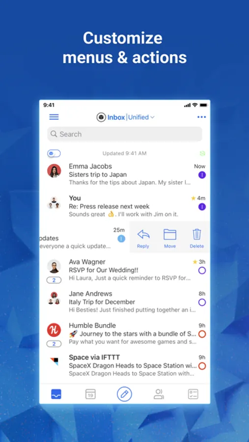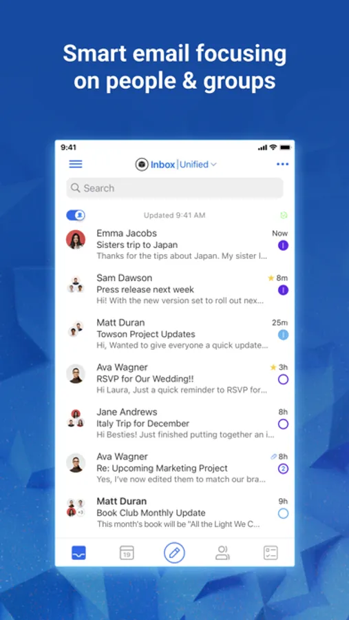 BlueMail is a world-class, secure, and free cross-platform email service that leverages cutting-edge technology to deliver a smart, beautifully designed, and elegant user experience. With BlueMail, you can effortlessly manage an unlimited number of email accounts from any provider.