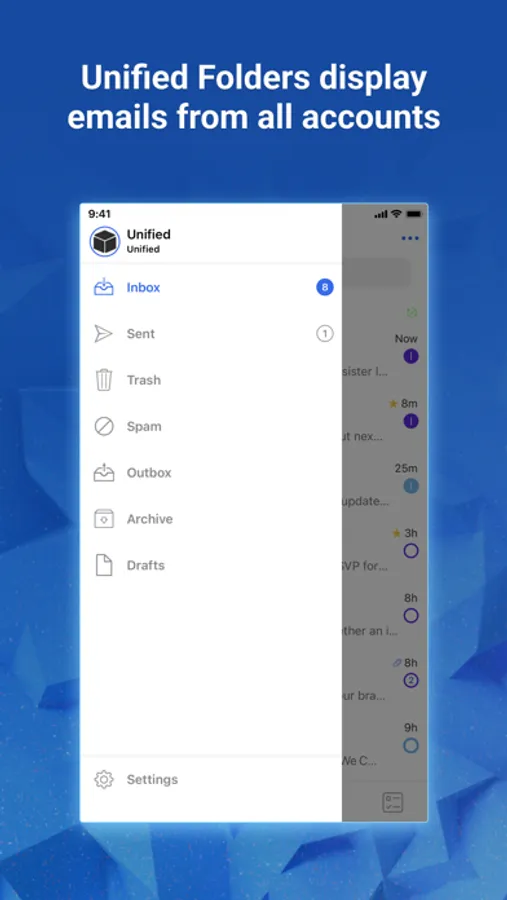 · Sync multiple inboxes from all your providers in a Unified Interface