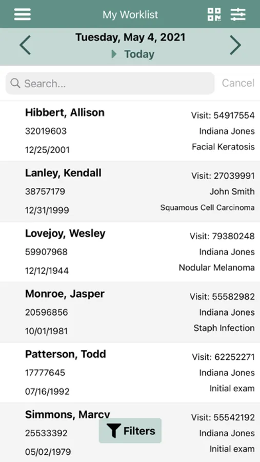 If using an EHR mobile app such as Epic’s Haiku/Canto or Cerner’s PowerChart Touch, Connext Mobile can be launched directly from the app and will have the full patient and user context. Otherwise, the app shows a list of all patients scheduled for the day, saving the clinician from duplicate data entry. Patient meta-data and encounter information is stored securely with the images in the Synapse VNA and available throughout the organization.