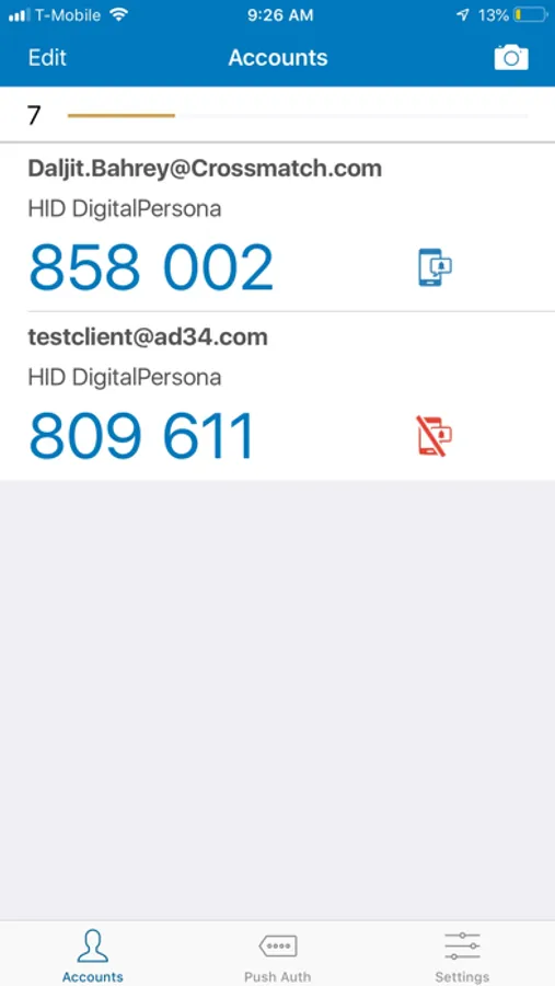 - Push OTP