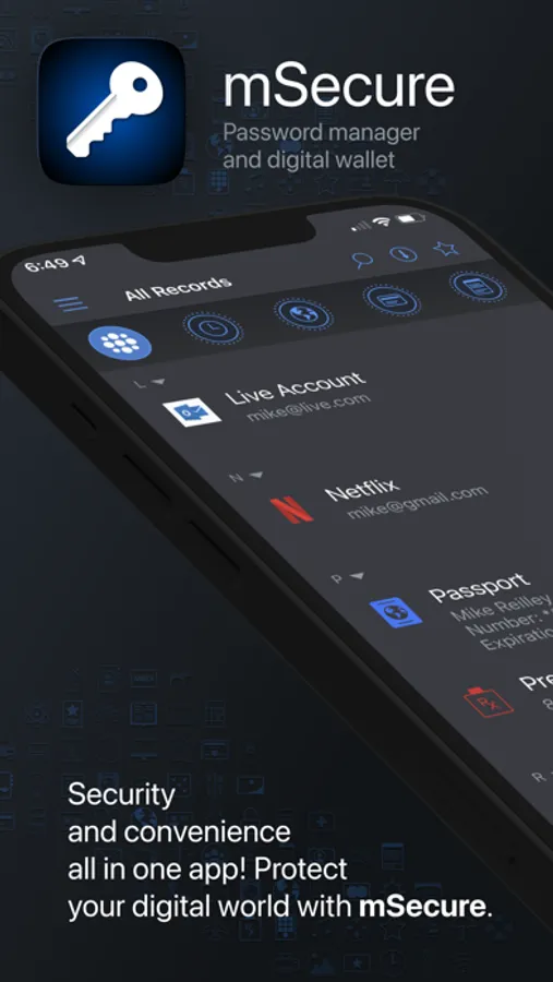 Don’t take any chances with your passwords and private information. Keep your data safe and secure with mSecure!