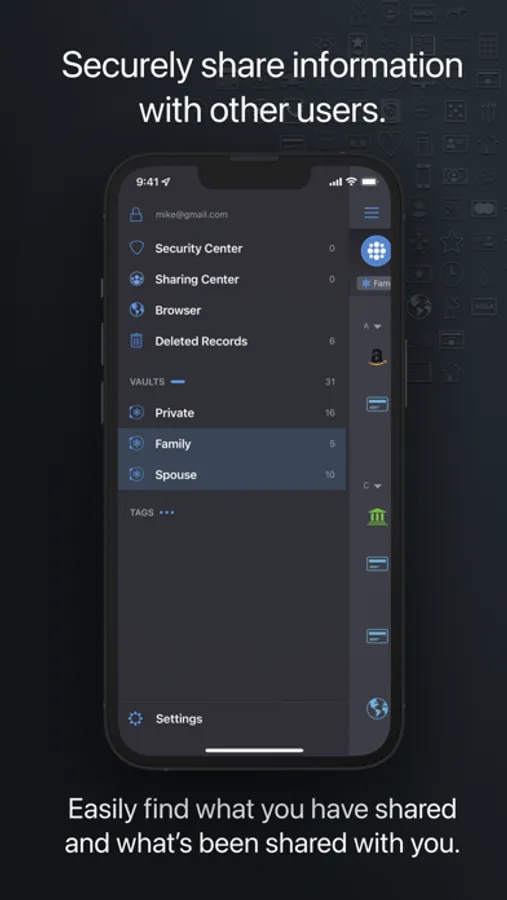 Share select information with family members or teammates with ease. Utilize Shared Vaults to house sensitive information and secrets you and your family or team need under one mSecure subscription.