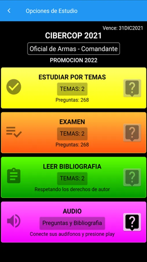 Tenemos un entorno muy amigable, herramientas completas, interactivas y faciles de usar. Preguntas actualizadas y ajustadas a los temas establecidos en la Directiva o prospecto correspondiente, coherente con la normatividad vigente. Genere, guarde y elimine examenes, repase las preguntas que falla, seleccione sus preguntas favoritas, clasifique sus preguntas, elimine las preguntas que crea conveniente, lea los textos directamente desde la misma aplicacion, vea la ubicacion exacta de cada pregunta - con respuesta subrayada, sustento, explicacion de la solucion con imagenes o video, y mucho mas....