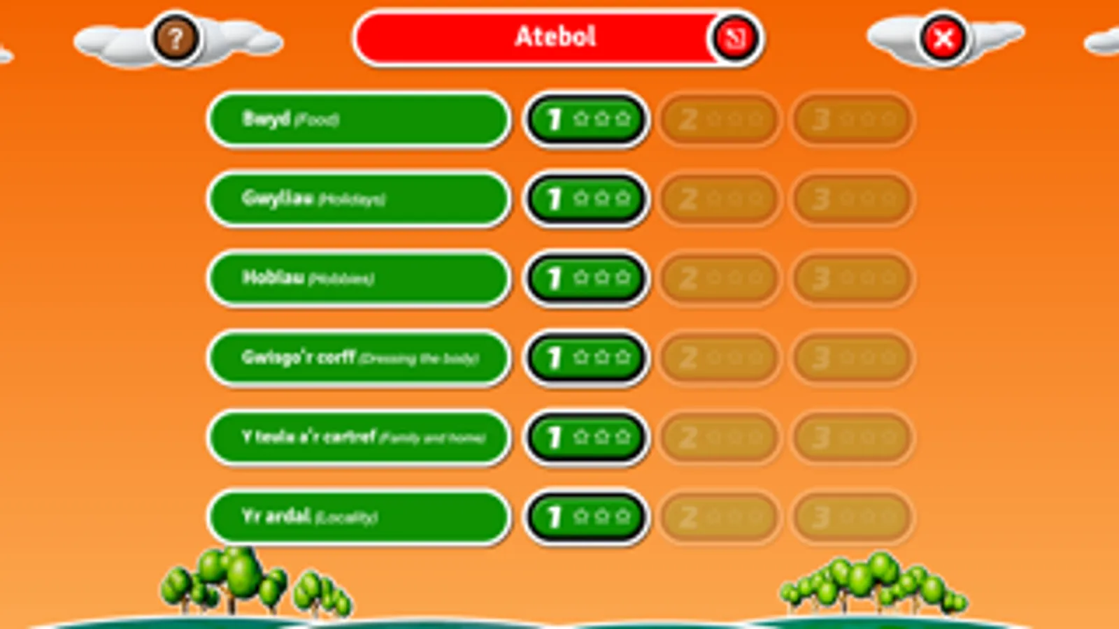 Ar ôl cwblhau’r gair yn gywir bydd ‘tic’ yn ymddangos wrth ymyl yr ateb. Bydd y gair nesaf yn dilyn. Mae’n rhaid cael 6 allan o 10 gair yn gywir i agor yr Haen nesaf - dyma sut mae symud ymlaen i Haen 2 ac yna i Haen 3.