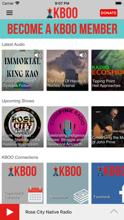 • Access Facebook, Twitter, Instagram and the KBOO website!