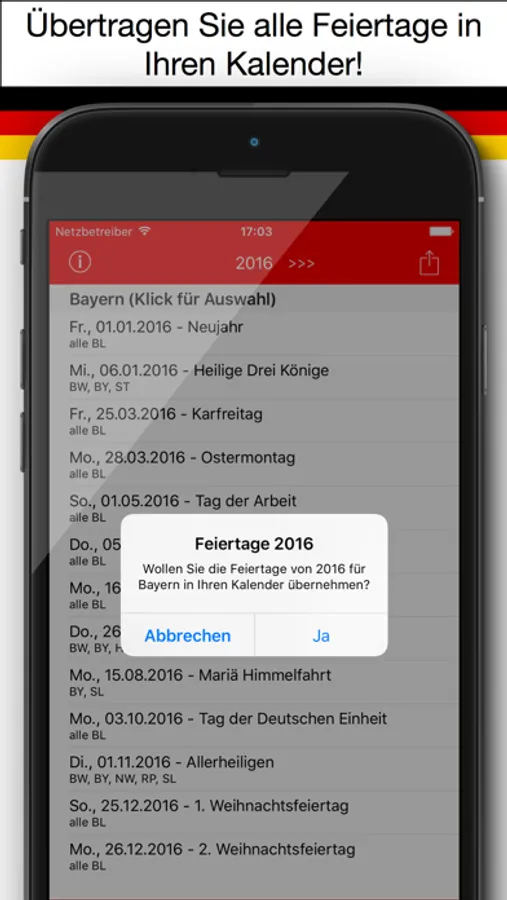 - Übertrage Sie die Feiertage in Ihren Kalender