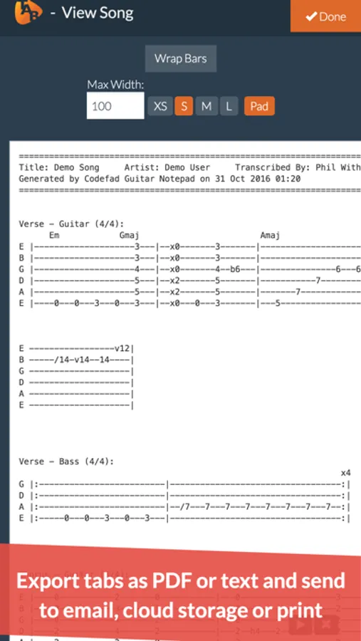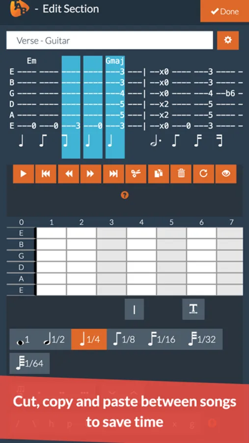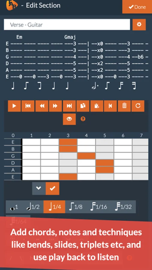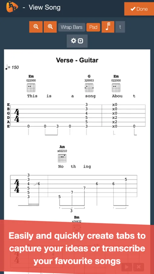 - Add chords, strum patterns and lyrics above your tabbed notes (no other apps I've seen support this!)