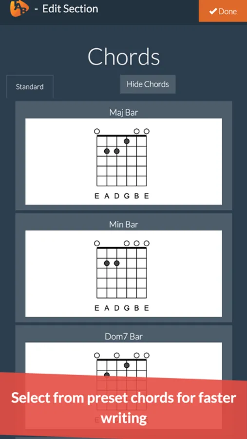 - Continuous chord mode - saves having to perform an extra tap to start adding chords