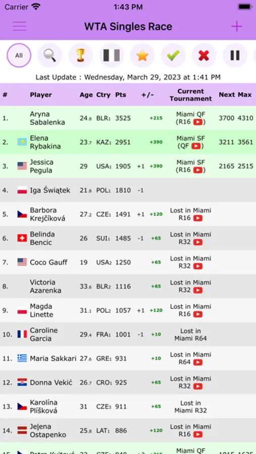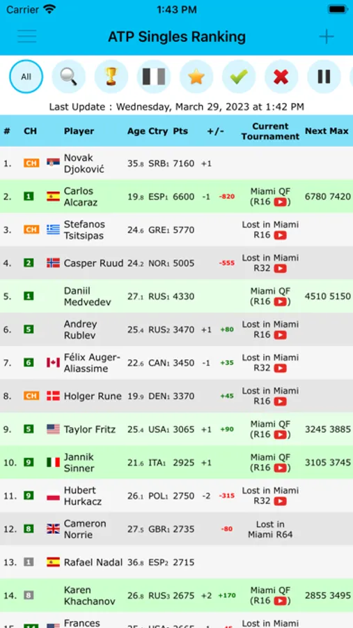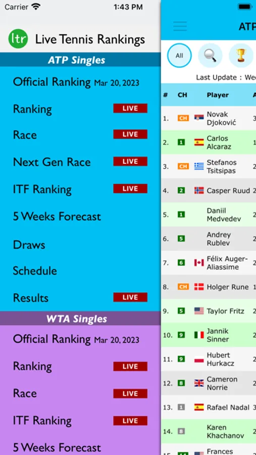 Live Tennis Rankings is a powerful tool for ATP, WTA and ITF rankings projections and results updated after each match.