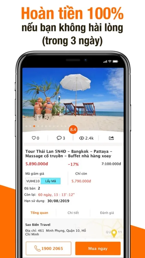 Giữ trọn vẹn niềm tin với chính sách hoàn tiền 100% nếu bạn không hài lòng. Việc hoàn tiền sẽ được tiến hành trong 03 ngày kể từ khi Dealtoday nhận được yêu cầu của bạn, giúp bạn luôn đảm bảo tiền của mình được tiêu đúng chỗ và trải nghiệm cảm xúc tốt nhất có thể