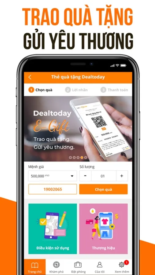 Hãy trao gửi niềm vui, tình yêu thương cho những người thân yêu của bạn qua hình thức thẻ quà tặng, Dealtoday e-Gift được chấp nhận tại hơn 150 thương hiệu và hơn 1000 điểm trên toàn quốc, giúp những người thân yêu của bạn dễ dàng sử dụng.