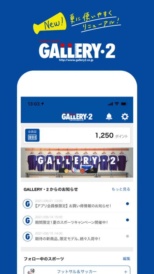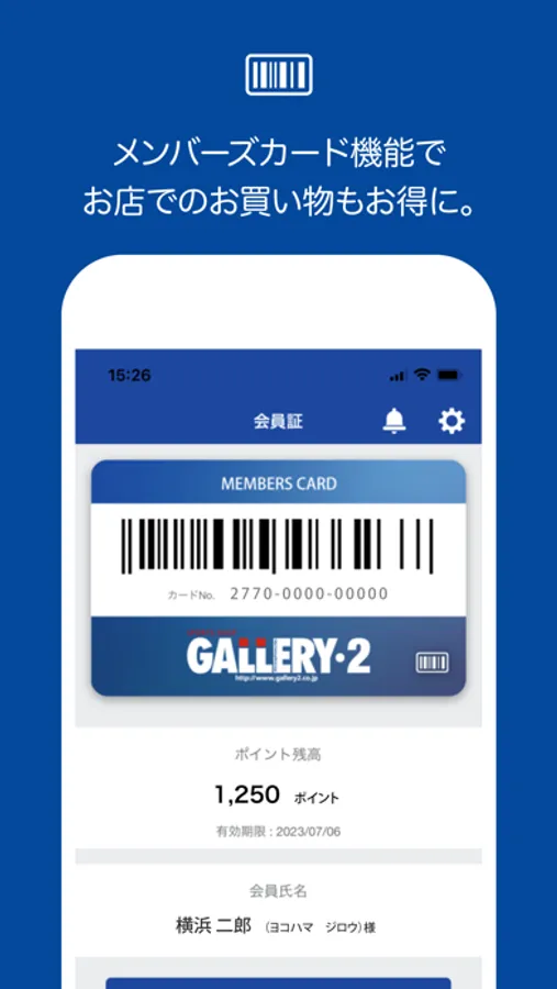 アプリにログインすることで、アプリ内でGALLERY・2のポイントカード情報を表示することができ、お財布に入れて持ち歩く必要がなくなります。