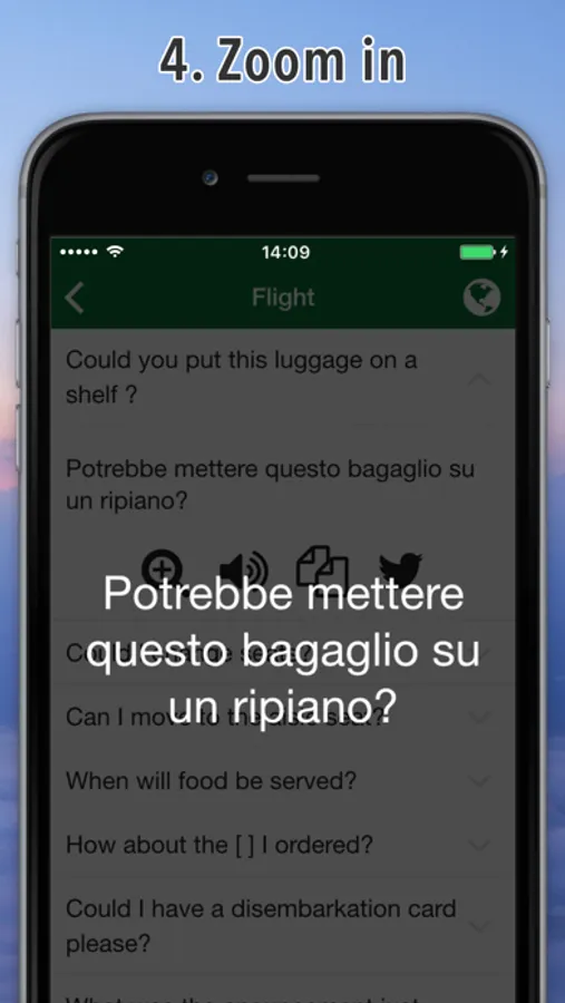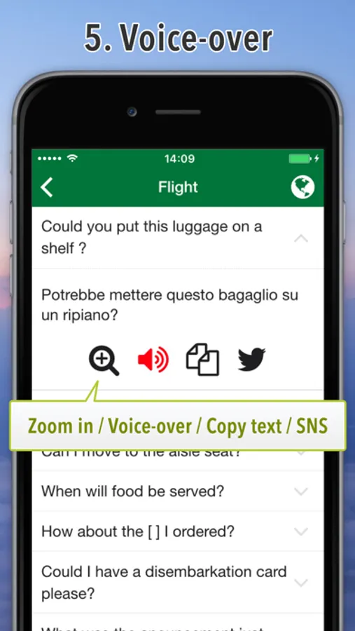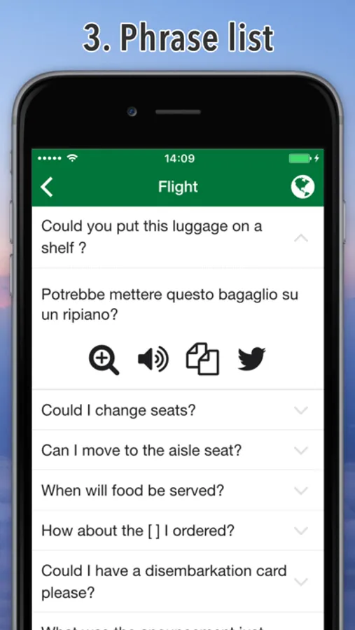 With the tap of a button the app gives you the translation and pronunciation of whichever phrase you need.