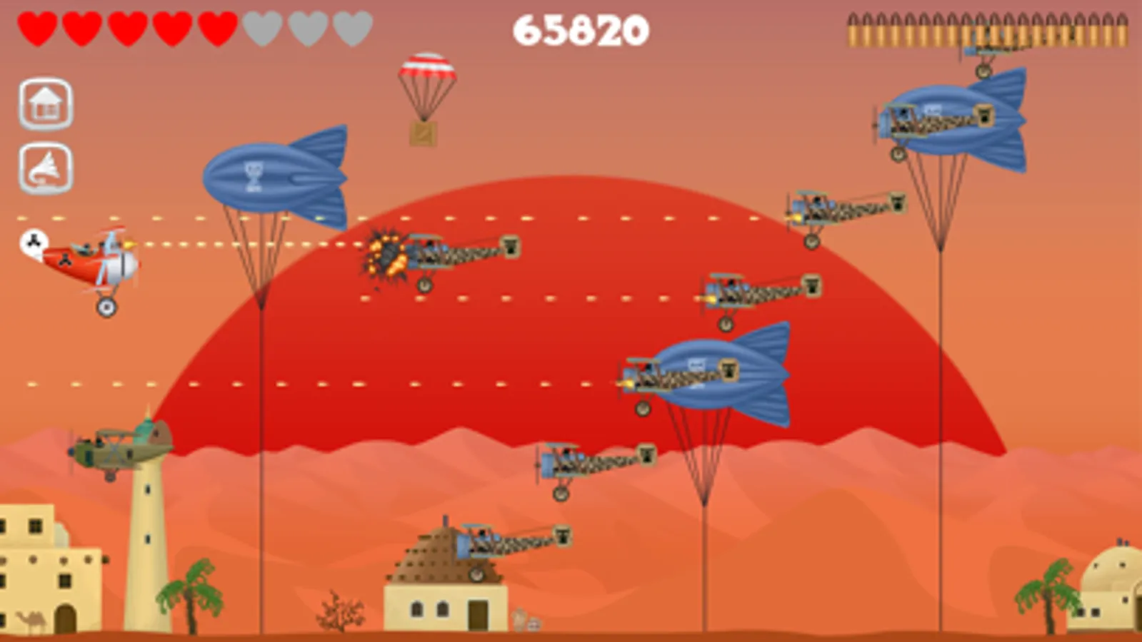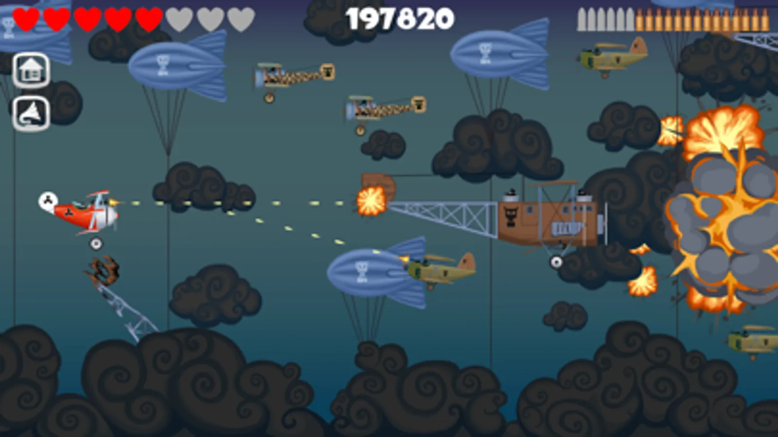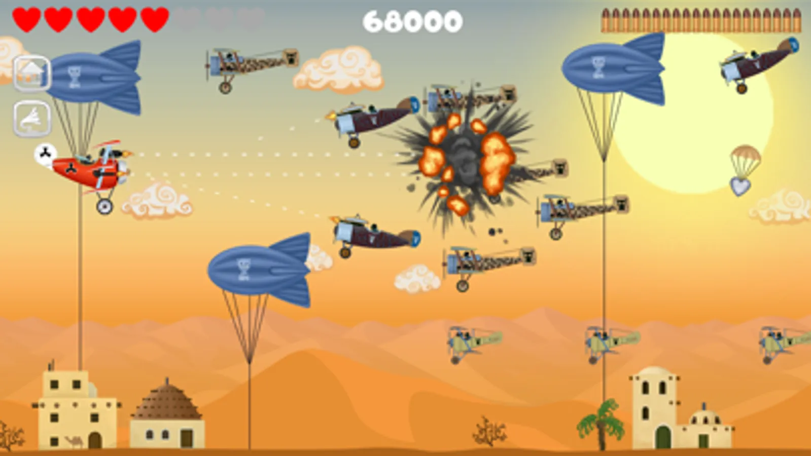The main character is Red Baron, a pilot of a triplane, who is fighting off hordes of enemies