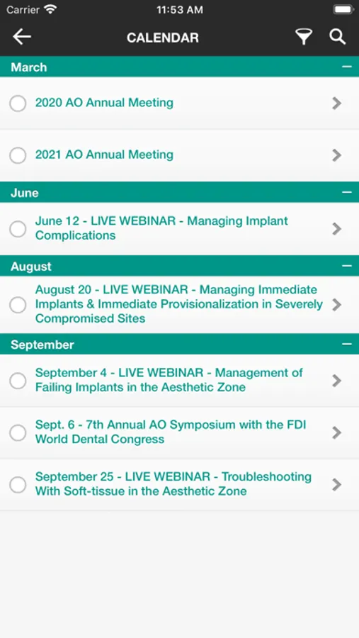 Access the full TripBuilder EventMobile™ Apps for the AO events to see detailed event info for each.