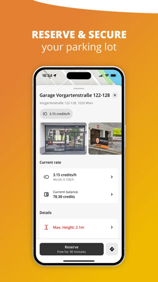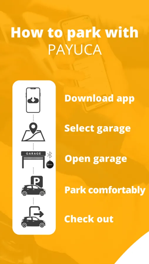 Download the free PAYUCA app and register. Park from 1.50 €/h* on weekdays or for unbeatable 0.15€/h* on weekends in PAYUCA garages. Or just forget about time with a comfortable daily maximum from 12€* - So you and your car are safe and the day is yours.
