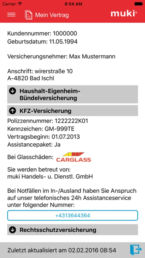 Komfortable Unterstützung und direkte Hilfe für alle muki Versicherungskunden in Österreich: In der muki App finden Sie alle Details zu Ihren Versicherungsverträgen, auch alle Polizzennummern und die Kontaktdaten Ihres Versicherungsbetreuers. So haben Sie Ihre Versicherungsdaten immer dabei und müssen im Schadenfall keine Aktenordner wälzen.