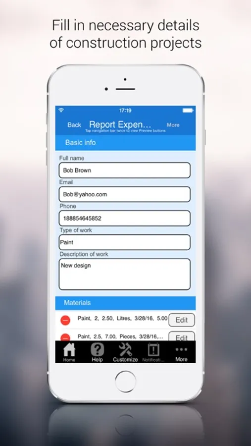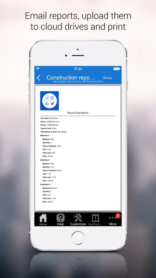 The Construction reporting and analytics app is designed to help construction professionals create expenditure reports and analyze the results. Start with adding a new report, add materials, equipment and labor, save and send this information, and the app will generate a PDF file with this report and create a convenient chart to view the results. Saved reports can be edited, and saved PDF files can be shared via email and cloud drives.