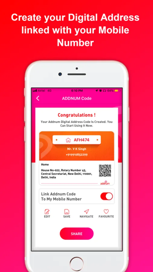 • Create Digital Address Number or ADDNUM code and link it with your mobile number.