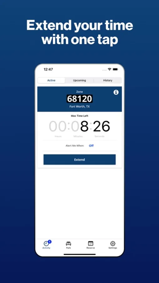 • Streets, Lots, and Garages: Enter the zone number on the posted signs in your area. Select the amount of time you want to park, and start your session. Extend time in the app if you are running late.