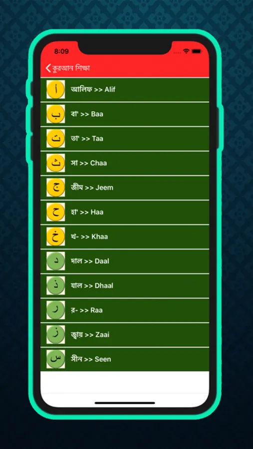 It's an application for Learning Quran without a teacher. Everybody can learn Quran by using this app. Most of the Arabic pronunciation are included in this app. Anyone can practice the Alphabets using this application.