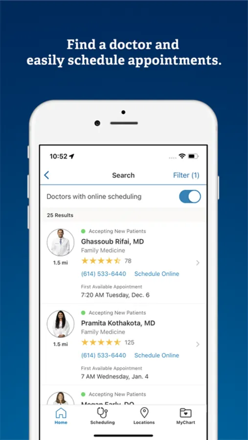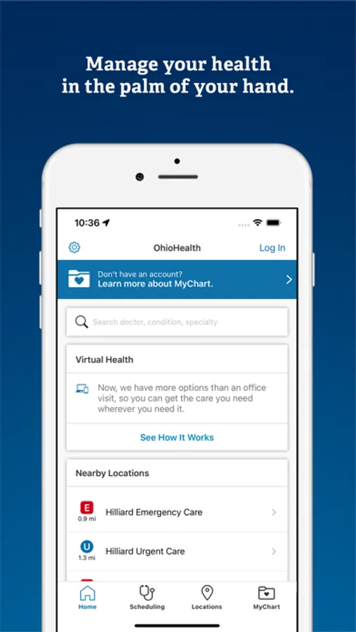 With a few taps in the OhioHealth mobile app, you can easily find OhioHealth doctors, get directions to nearby urgent and emergency care locations, and access your MyChart health record – anytime, anyplace!
