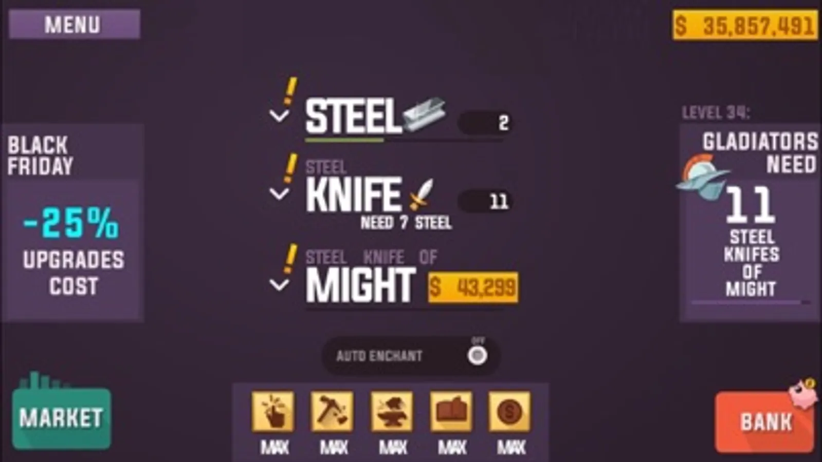 Be a true blacksmith in this crazy-mixed idle game! Try all that you have: marketplace, bank, upgrades lab, news and more - to level up!