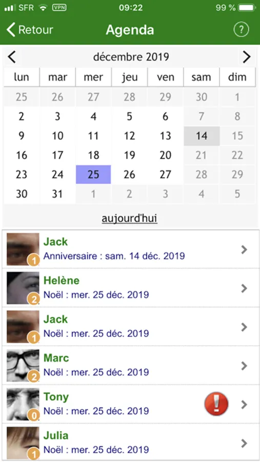 * L’agenda vous permet de visualiser les « actions-cadeaux » du mois : trouver une idée, acheter, offrir.