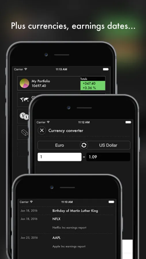 - Custom Stock Alerts (e.g. price of a stock rises over or falls under a threshold)