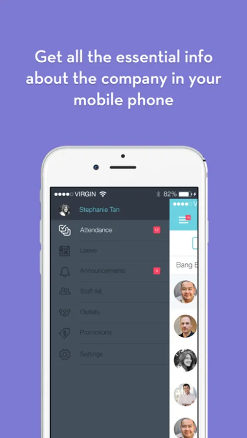 The app also allows staff to apply for leave and for their managers to approve or reject the leave application.