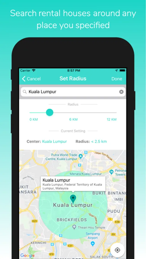 You set a location, and we find the properties around it for you! Find a place to live around your new company or school has never been so easy