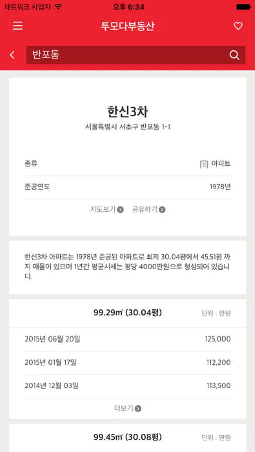 > 국토부에서 제공하는 2006년부터의 부동산 시세를 모두 담았습니다. 이제 발품은 그만, 간편한 검색만으로 10년 전부터 최근까지의 모든 실거래 거래 정보를 확인해보세요. 아파트, 오피스텔, 빌라, 연립주택, 다세대주택 매매정보가 모두 담겨있습니다. 투자정보는 투모다에서 확인해보세요.