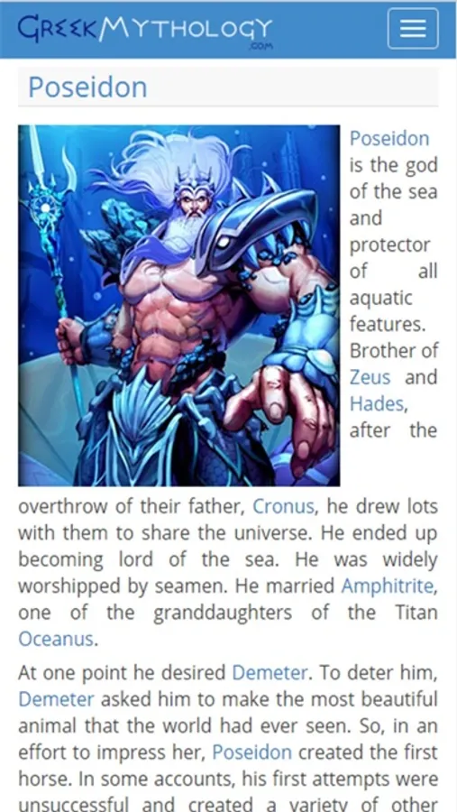 Get information and pictures on all subjects of Greek Mythology from GreekMythology.com. Includes details on Greek Gods like Zeus, Poseidon and Apollo, Greek Goddesses like Aphrodite, Hera and Athena and Titans like Atlas and Cronus.
