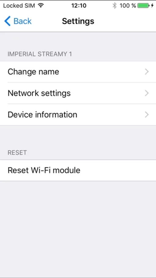 1) Connect your iPhone under Settings > Wi-Fi to the audio receiver network (eg "IMPERIAL STRAMY 1")