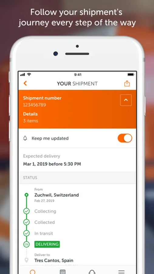 • Trace your shipments and receive updates