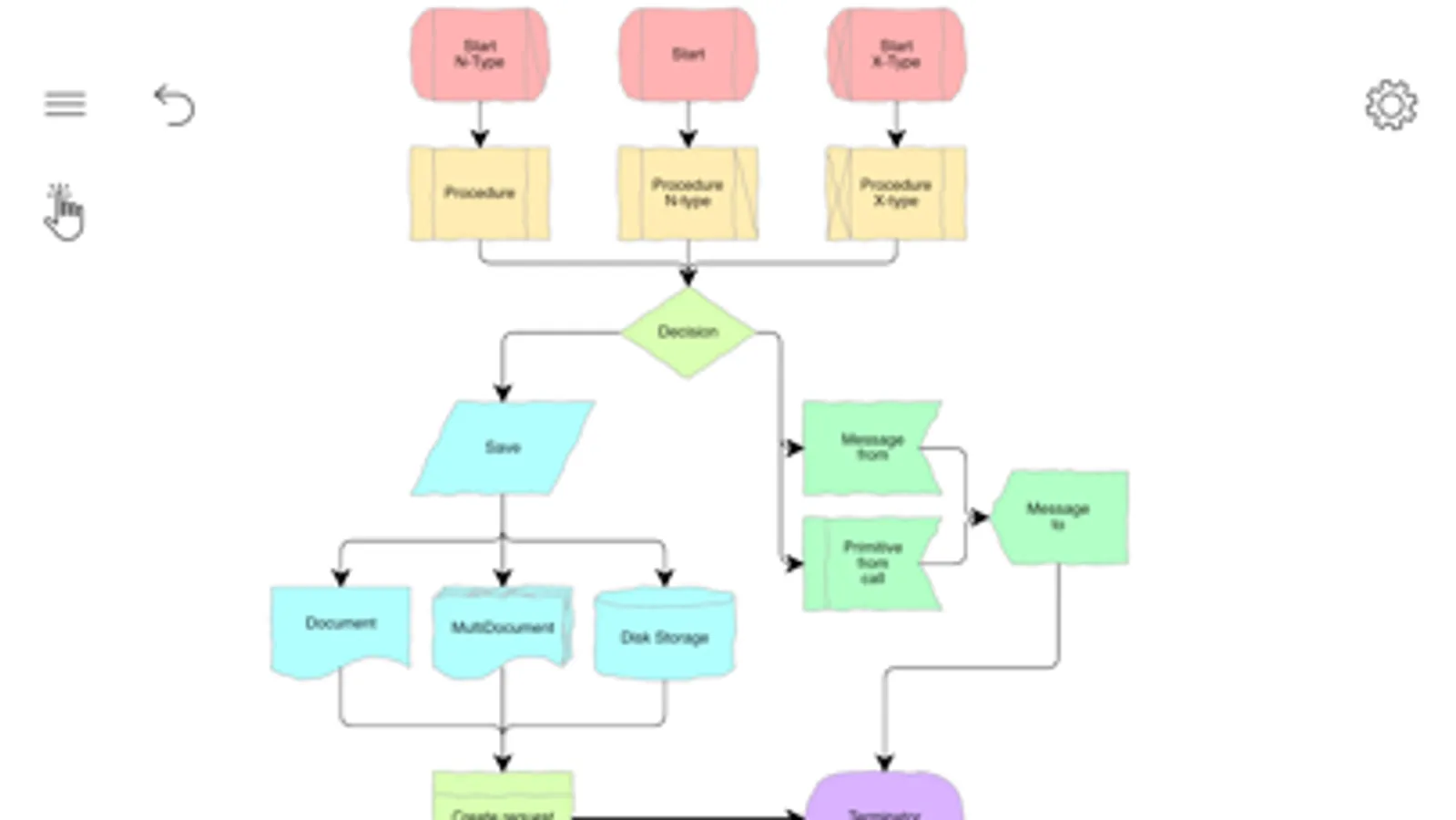 Drawing of complicated flowcharts and diagrams on a tablet has never been so easy and quick. Thanks to unique automatic layout algorithm for connections and diagram objects, recognition of the hand-drawn shapes and dynamic grid, there is no need to precisely position shapes on the screen.