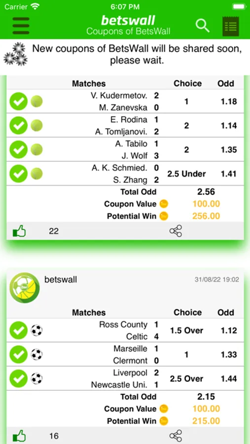 In addition to reaching the sports betting tips of the world's most successful betting software BetsWall for free, you can also create your virtual betting coupons without risking your money and share your predictions with the whole world.