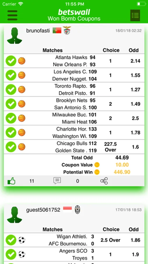 • Create betting coupons and bet for free as well as like, comment and share coupons of tipsters from all around the world.
