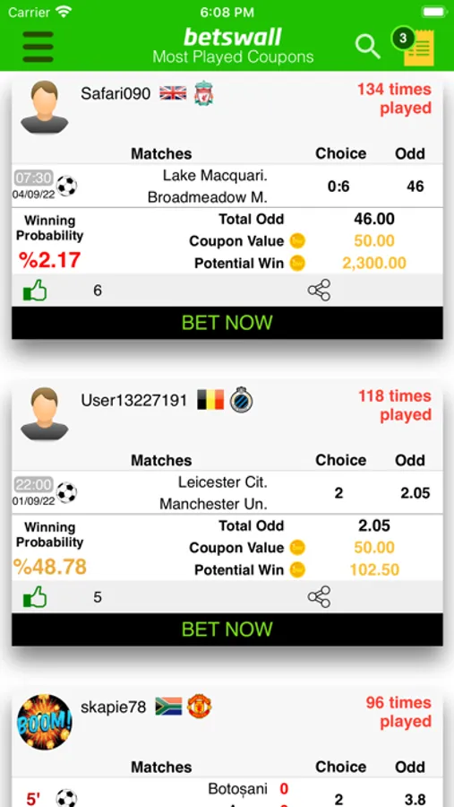 BetsWall is the first social betting platform of the World ! Over 3 Million user shared their betting tips on the BetsWall until today.