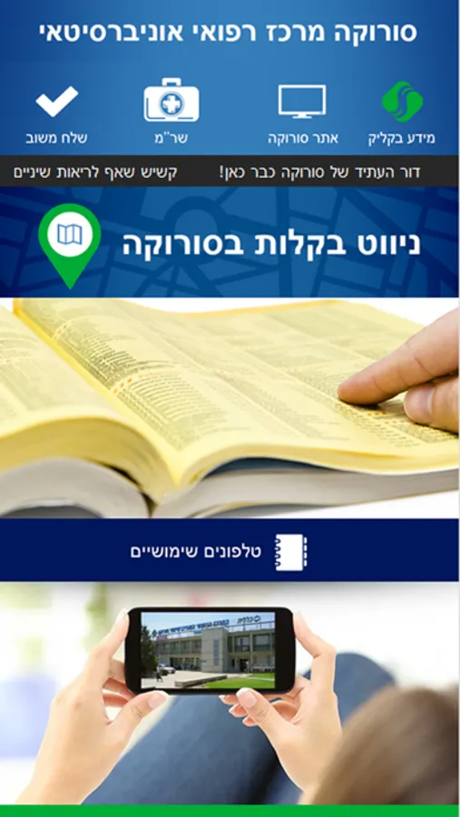 סורוקה מרכז רפואי אוניברסיטאי משיק אפליקציה חדשנית וראשונית מסוגה שתאפשר למטופלים, למבקרים ולעובדים להתמצא ברחבי בית החולים, לקבל מידע וליהנות ממגוון שירותים ישירות מהטלפון הנייד.