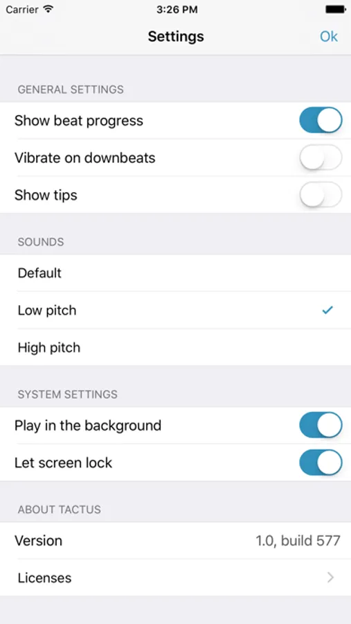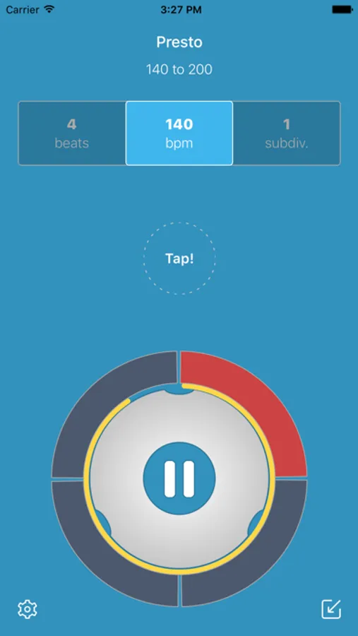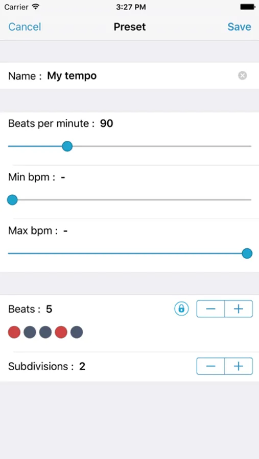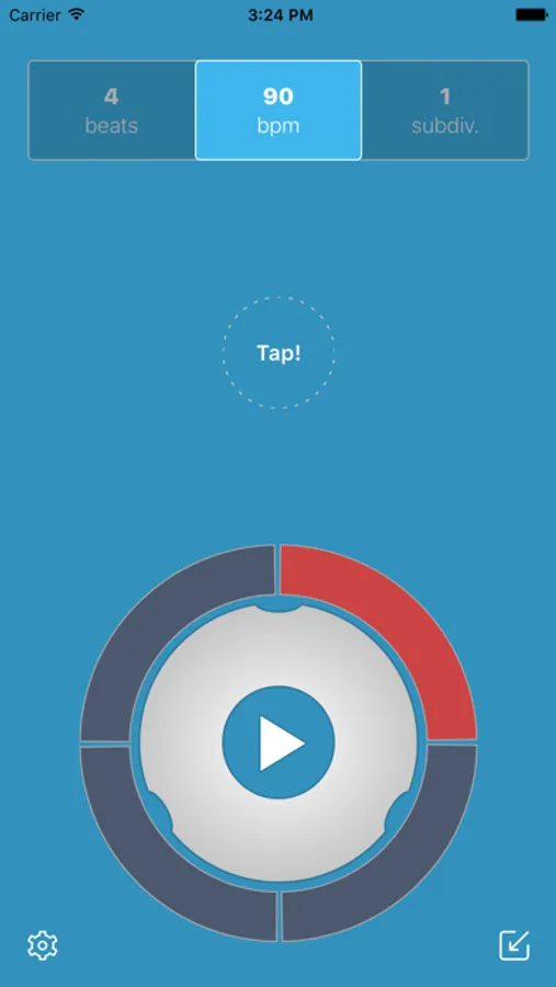 - set the number of beats per bar (up to 12) and the type of each beat (strong - weak - mute)