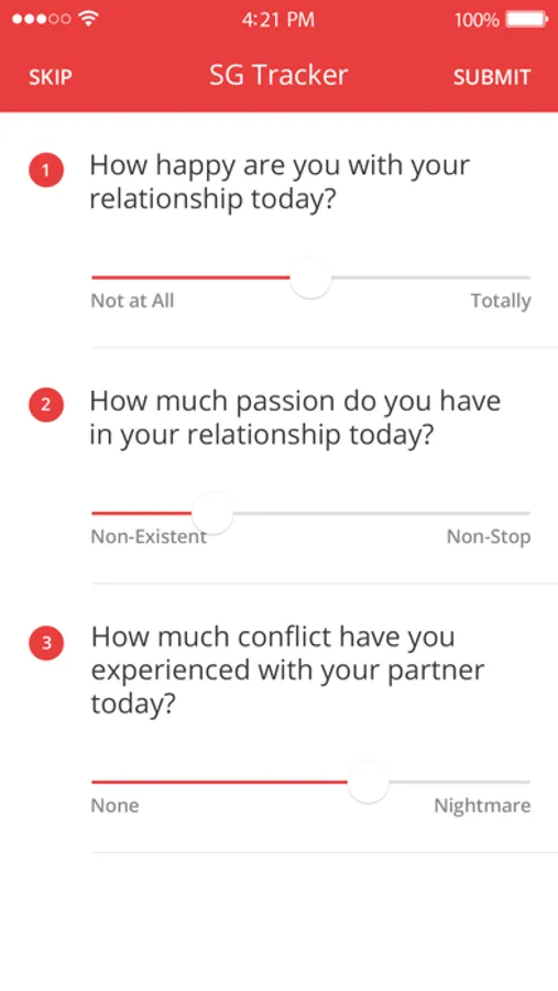 3. SG Tracker monitors the daily ups and downs of your relationship, like a Fitbit for your relationship. You sometimes lose sight of how your relationship is progressing over time. Not anymore.
