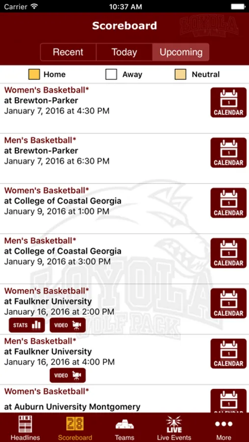 Welcome to the official app of the Loyola University New Orleans Wolf Pack.