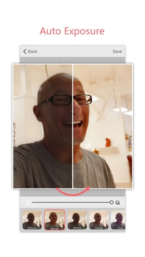 - Auto exposure: It can do automatic exposure correction and photo clarifying, especially for backlit photos. This function can be achieved when user chooses the “Boost” filter mode.