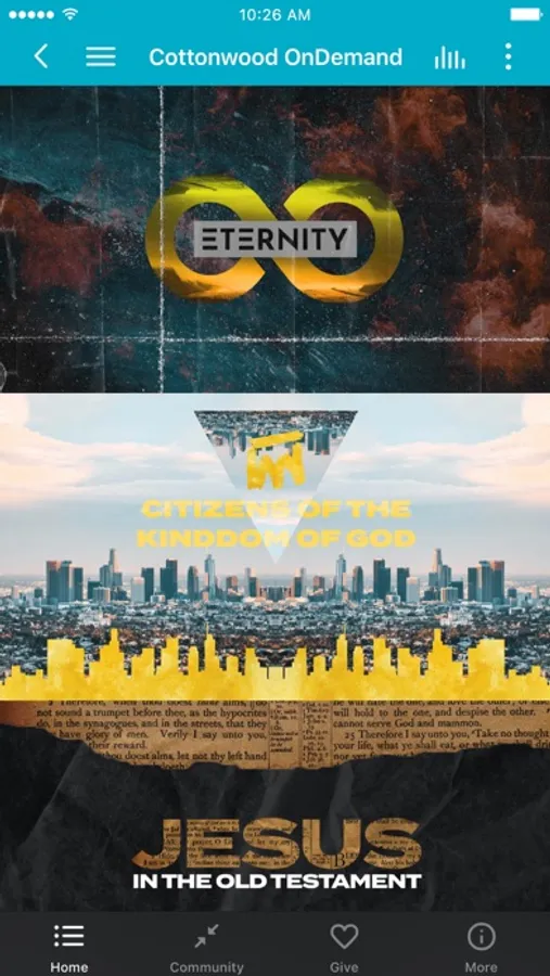 The Cottonwood Church App was created with the Subsplash App Platform.